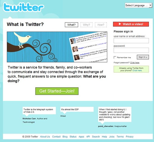 Twitter adalah situs jejaring sosial gratis dan layanan micro-blogging yang memungkinkan pengguna mengirimkan dan menerima pesan singkat. Program jahat Net-Worm.JS.Twettir mulai menyebar di Twitter sejak Sabtu, 11 April lalu.