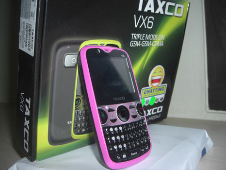 Spesifikasi Taxco VX6 diantaranya tampilan 320×240 262K TFT, GSM900/DCS1800 dan CDMA800, kartu SIM 2,8V/1,8V, baterai 2,8V 1200mAh, kamera 1,3 MP autofokus, USB insert dan tentu saja keyboard QWERTY. Kapasitas memori kontak hingga 500 buah dan 100 SMS.