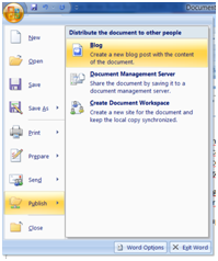 Pertama, jalankan Fungsi blog dari Office Button > Publish > Blog